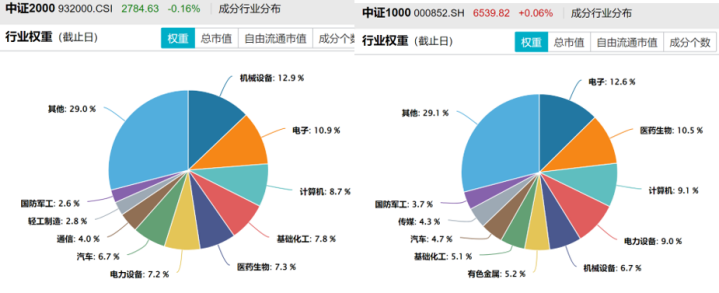 期间还伴随新能源产业链水涨船高,汽车零部件与固态电池接连,产业链景气度持续攀升——中证1000和中证2000指数恰恰重仓这些高科技、高成长行业,聚焦“新质生产力”与“专精特新。这次成长股“一呼百应”,刚好带领指数“势不可挡”。